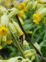 Meget almindelig i foråret, hvor de ses mange steder svævende over vegetationen eller fødesøgende efter nektar.