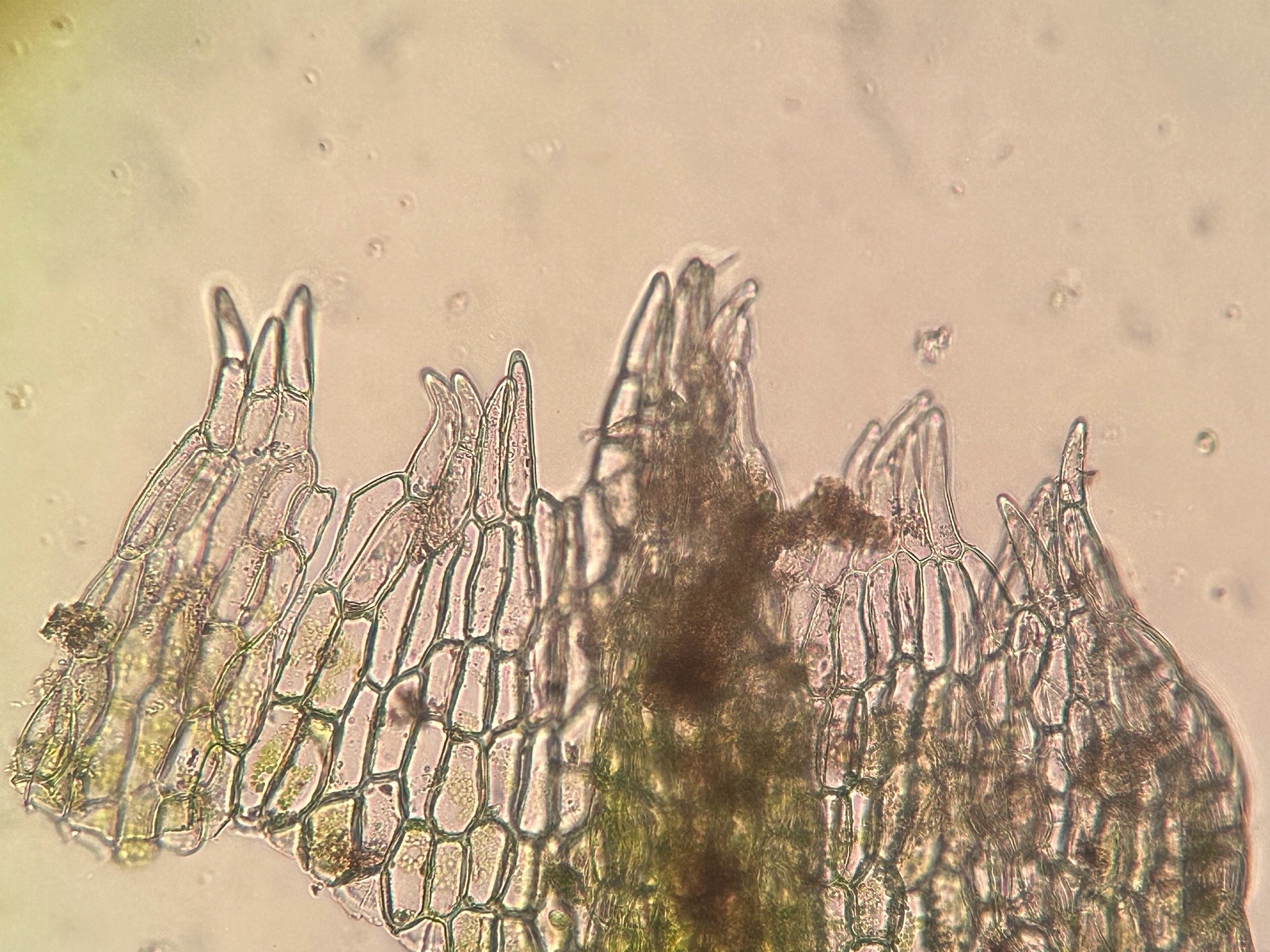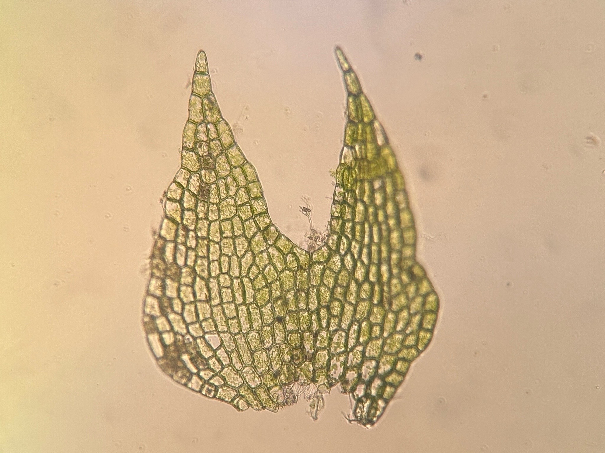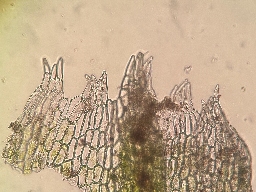 Jeg overvejer Cephalozia bicuspidata subsp. lammersiana, som vil passe med voksestedet samt de aflange perianter og stængel-tværsnittet (når jeg sammenligner med billeder i floraen). Ved bare ikke helt om bladcellerne er store nok? @Jan Robin Larsen