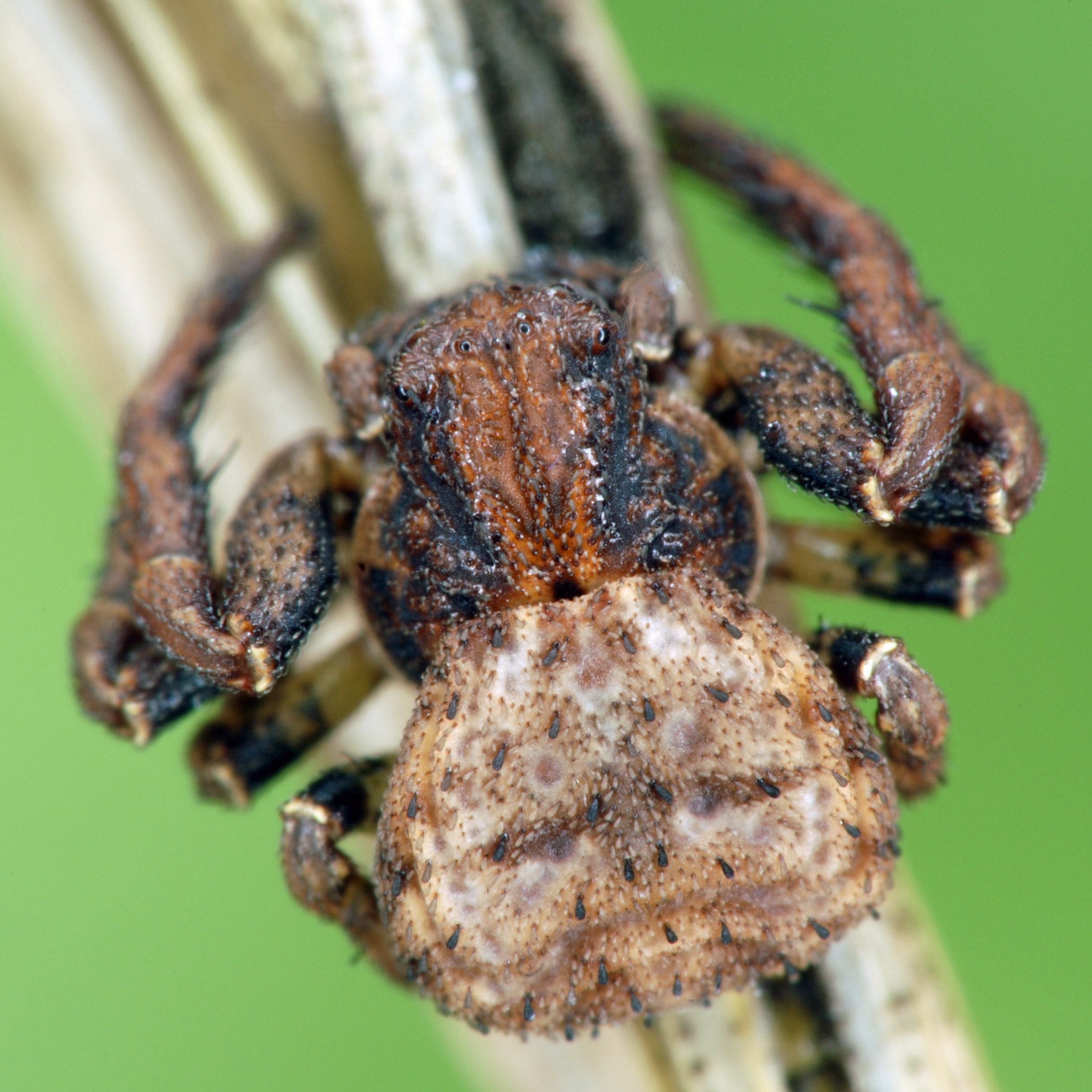 Ozyptila scabricula er en lille, rynket og vanvittigt godt camoufleret Krabbeedderkop (Fam. Thomisidae) som findes de varmeste steder i landet.